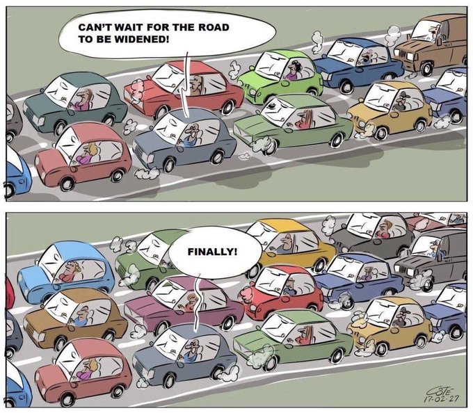 If you build more roads, you will get more traffic, a phenomenon known as ‘induced traffic’. [Source: https://bettertransport.org.uk/roads-nowhere/induced-traffic]