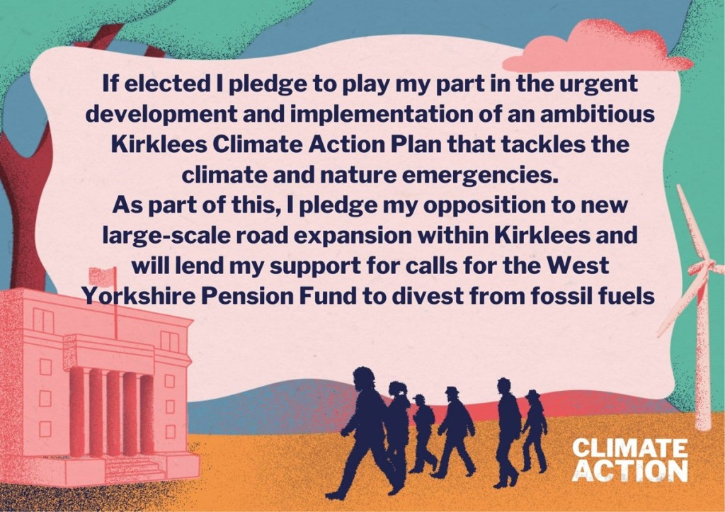 “If elected I pledge to play my part in the urgent development and implementation of an ambitious Kirklees Climate Action Plan that tackles the climate and nature emergencies.