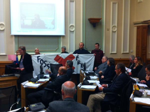 Kirklees Council has today (Wednesday 7th October 2015) voted in favour of a Fossil Free Kirklees motion proposed by Green Party councillor for Newsome Andrew Cooper. The motion acknowledges that ‘80% of existing fossil fuel reserves cannot be burned if we are to keep below the internationally agreed climate change goal of keeping below 2 degrees’. It also recognises that there is a ‘strong financial case for divestment, with recent concerns raised by the Bank of England about ‘unburnable carbon’ and significant financial risks posed by fossil fuel equities‘.