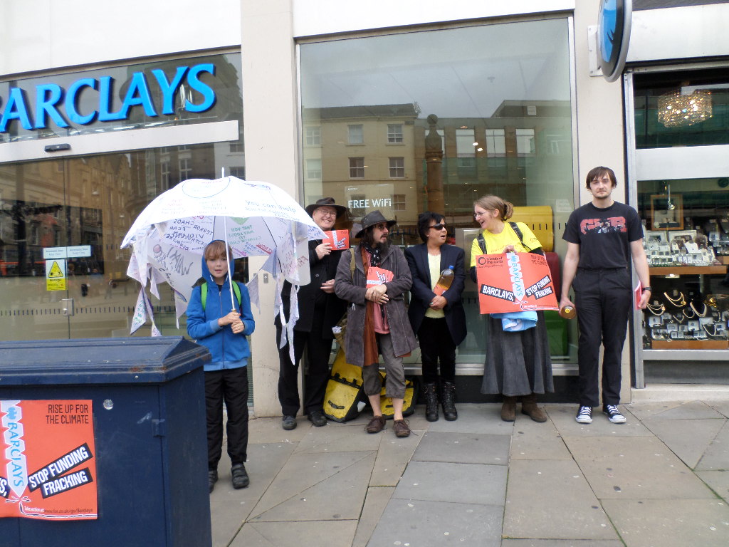 Up and down the country hundreds of people were out on the streets collecting petition signatures, closing accounts, sending letters, even singing and dancing to tackle climate change and ask Barclays to stop funding fracking1.