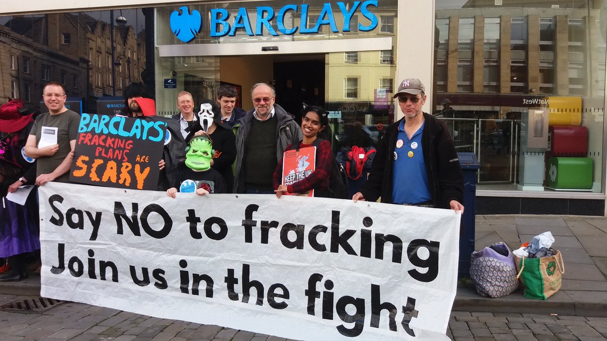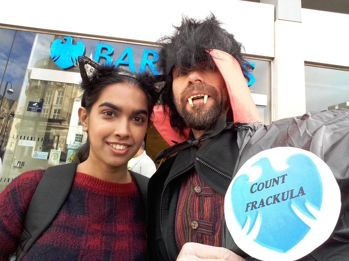 Up and down the country hundreds of people are taking to the streets collecting petition signatures, closing accounts, sending letters, and running spooky Hallowe’en-themed events to ask Barclays to stop funding fracking.
