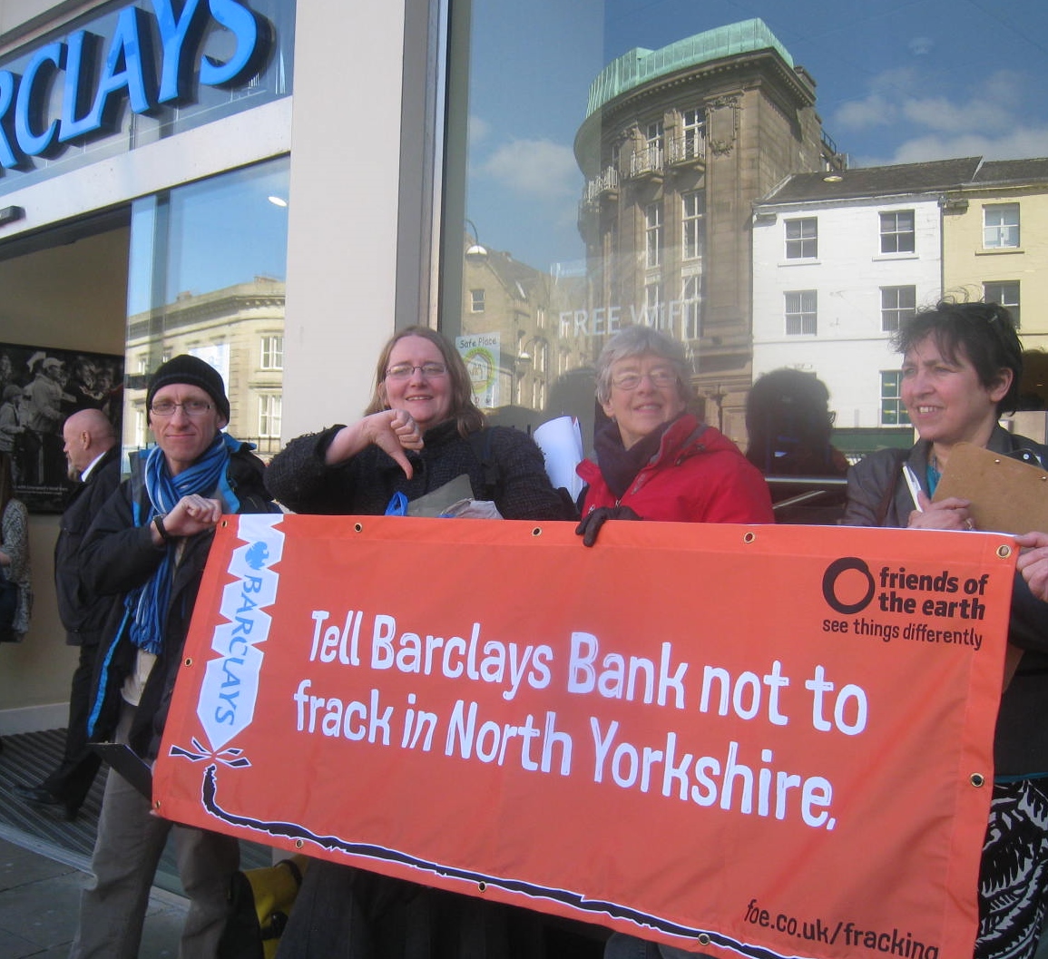 Huddersfield Friends of the Earth and Fossil Free Kirklees are calling on Barclays Bank to pull out of investing in fossil fuels and to cancel their financial support for fracking in Ryedale North Yorkshire. Barclays Bank owns 97% of Third Energy which is planning to develop their plans to frack in the Ryedale village of Kirby Misperton, despite growing opposition from parish councils, businesses and residents. In recent evidence to the Environment Food and Rural Affairs Select Committee, Third Energy’s John Dewar described plans to expand fracking in Ryedale to 19 sites containing up to 50 fracking wells.